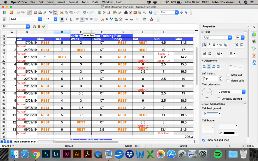 So my training is split into a number of parts, enough rest days and also adding some cross training (strength work, Swimming etc). I have also added where I am able to do a parkrun for my clubs parkrun league and countered that into the training miles. This is also there for a few changes. I even have a 11 mile route planned surprisingly.